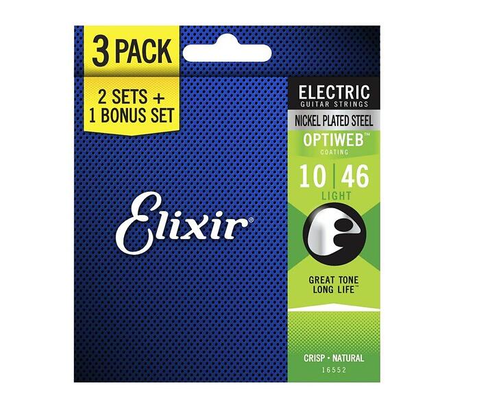 Elixir 16552 Electric Nickel Plated Steel Optiweb 010-046 3-Pack