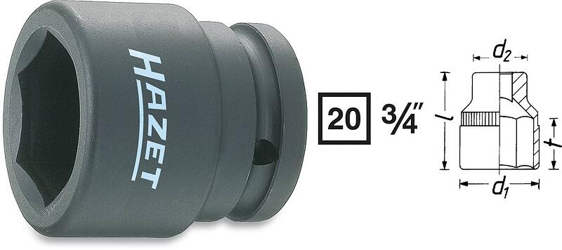 Hazet 1000S-22, Uttag, Svart, 1 huvuden, 3/4, Metrisk, 22 mm