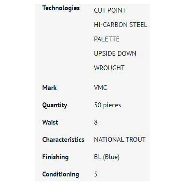 Le meilleur prix pour VMC 9335b Spaded Hook 50 Units Blå 6 est actuellement de 12,60 €. leDénicheur compare les promos et les offres de marchands en ligne.