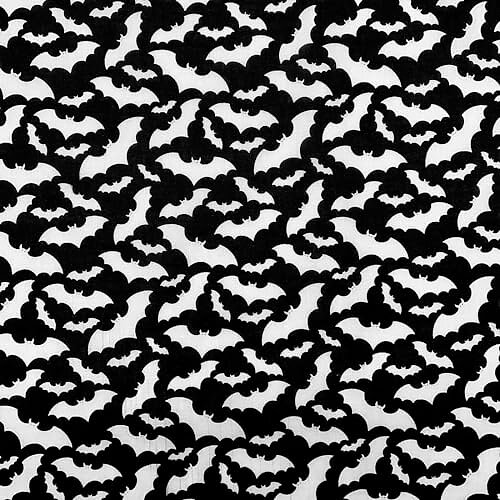 Black Oddies Textile Halloween Polycotton Fabric & White Vampire Bat Print Fabric Craft Material Metre