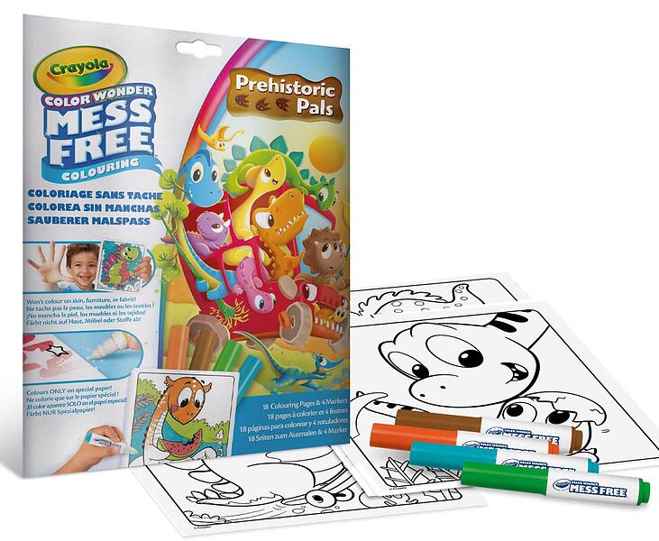 Crayola Color Wonder, Kit Coloriage avec 18 Pages à Colorier et 4 Feutres Sans Tache, Thème les Amis Dinosaures, Activité Créative pour Enfa
