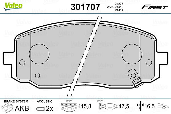 Valeo Jeu de plaquettes de frein, frein à disque 301707