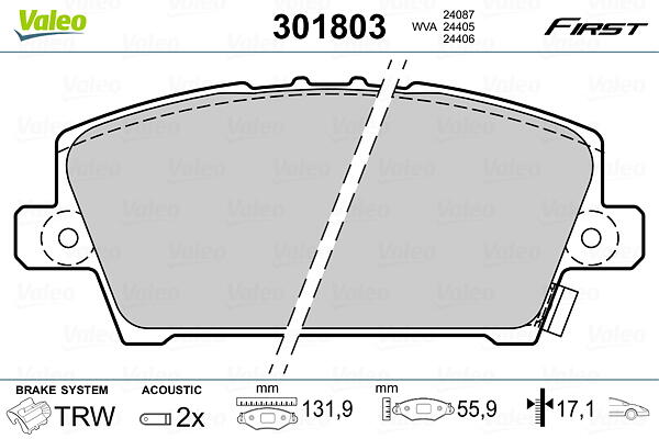 Valeo Jeu de plaquettes de frein, frein à disque 301803
