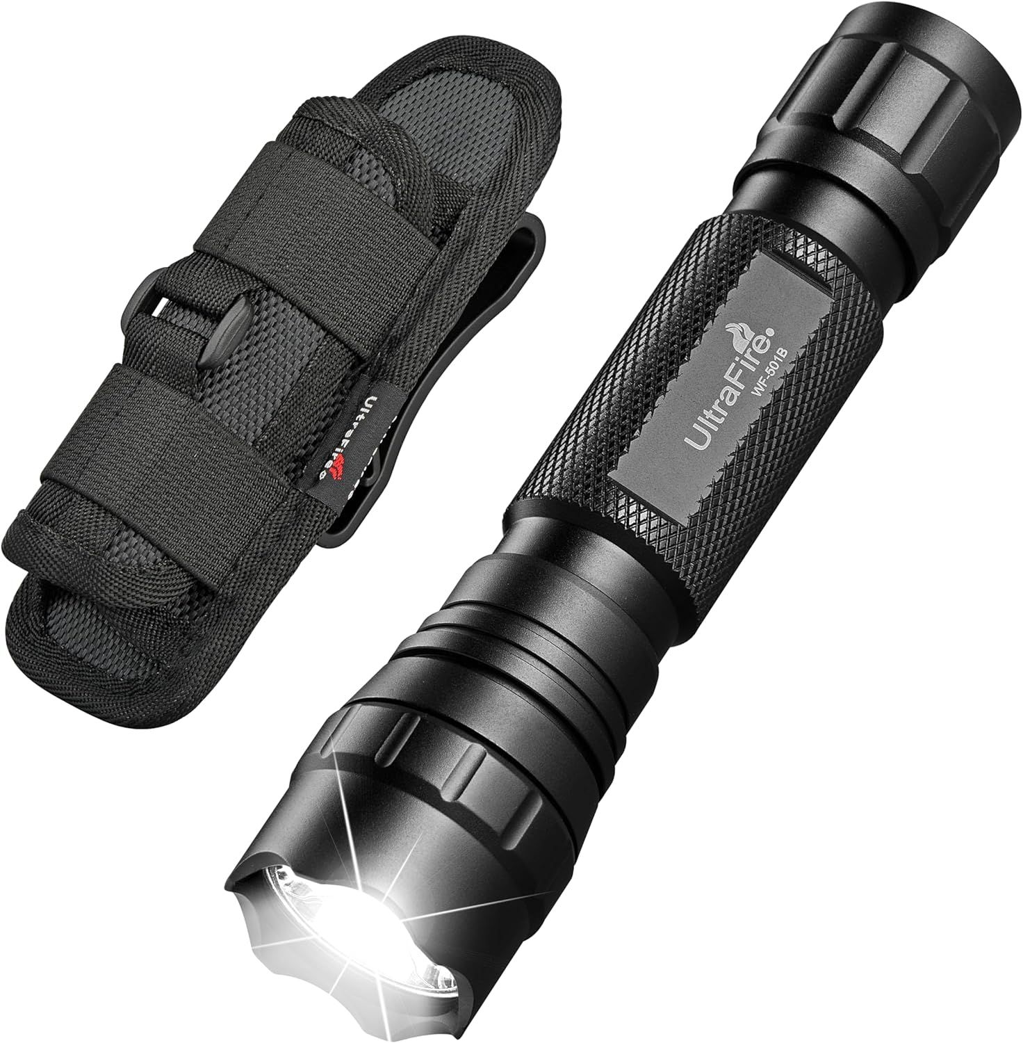 Ultrafire WF-502B Torche et Étui à lampe de poche Set, 1000 Lumen LED Torche 1 Mode et Support de lampe de poche avec clip rotatif à 360 degrés