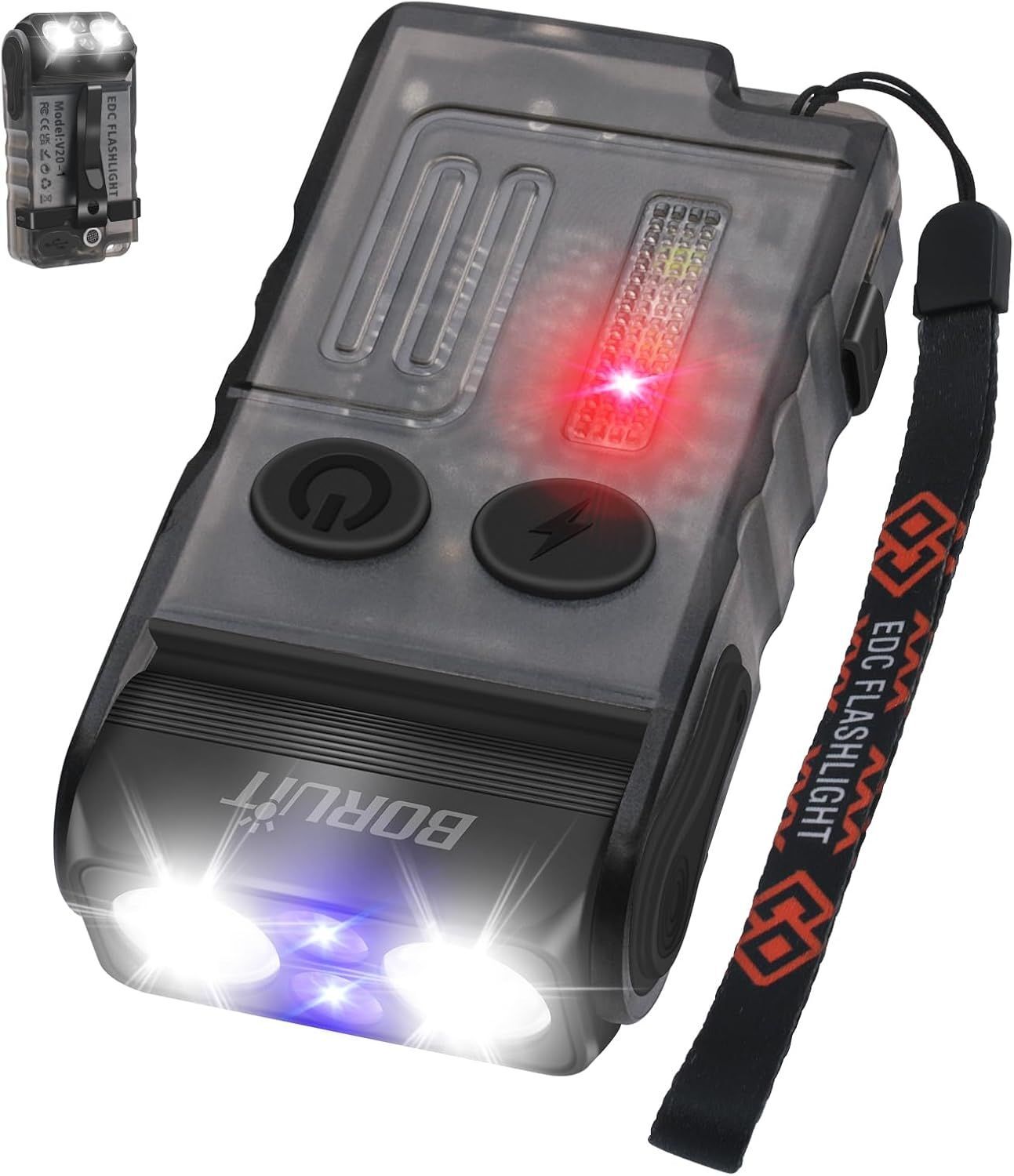 BORUIT V10 Mini Lampe de Poche LED, 1000 Lumen Porte - clés Lampe de Poche avec 80dB Alarme Buzzer, Lampe UV 365nm, Queue Magnétique, Imperméable IPX4 (Noir)