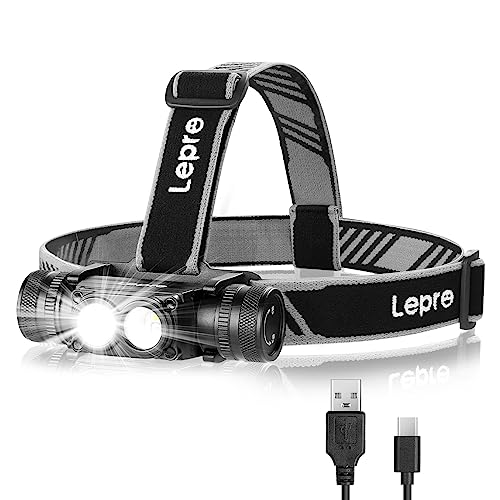 Lepro Lampe Frontale Rechargeable, 1000 Lumens, Torche Frontale LED Ultra Puissante avec Lumière Rouge, 6 Modes D'éclairage, IP65 Étanche Lampe Frontale LED pour La Pêche,Camping,Randonnée,Cyclisme