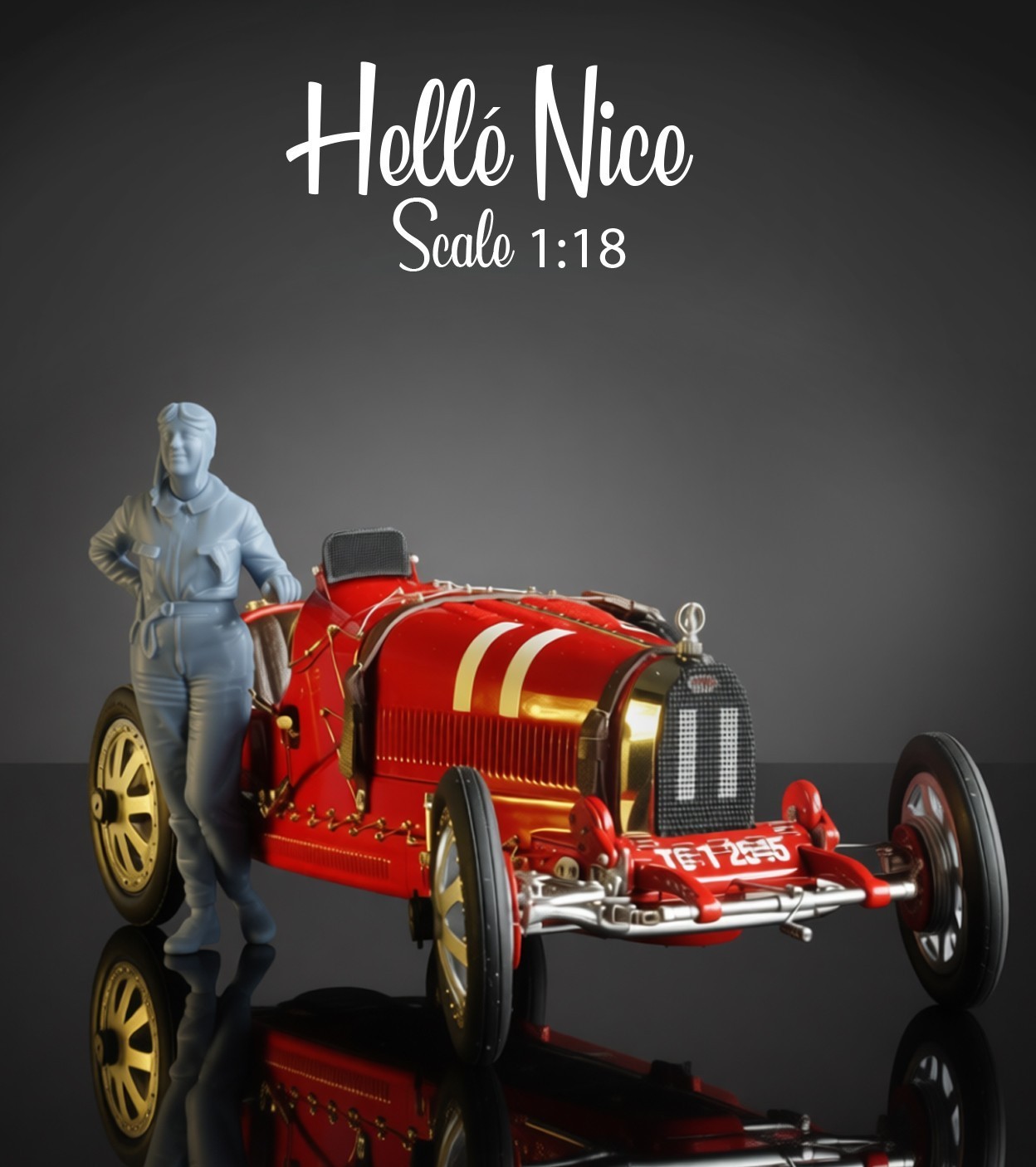 BELLE FIGURINE NON PEINTE Hellé pour 1:18 CMC BUGATTI Type 35 Grand Prix