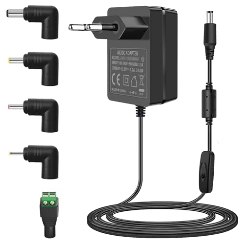 JZK Alimentation 12 Volt 2 A, Adaptateur 12 V 2 A, AC 220 V vers DC 12V, Sortie 500 mA 1000 mA 1500 mA 2000 mA, Remplacement pour Chargeur Mural avec 8 adaptateurs de Prise DC