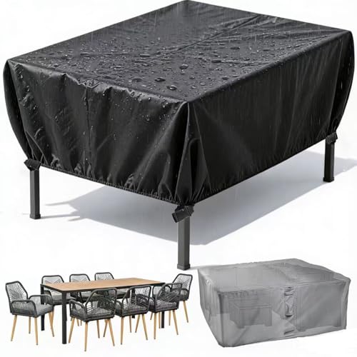 Générique Housse de Salon de Jardin Imperméable, 420D Oxford Housse Table de Jardin Rectangulaire, Bâche Protection pour Table et Chaises Extérieur (A 123x123x74cm)