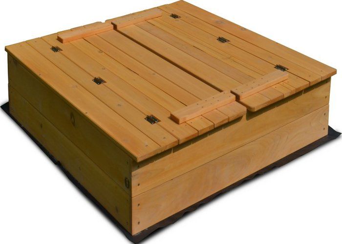Rijoka Bac à sable en bois - Pliable - 2 banques - Bâche de sol incluse - 127x123x23cm