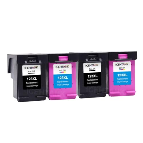 SErgcrFXb Icehtank 123 XL Cartouche d'encre 4 compatibles avec Les Fournitures d'imprimante DeskJet 2620 2130 2132 2630 3630 3632 3639 Remplacement du numéro de pièce 123xl(123XL 2Black 2Color)