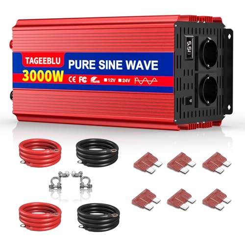 TAGEEBLU 3000W convertisseur 12v 220v Pur Sinus, transformateur 12v 220v avec écran LCD, 2 Prises UE