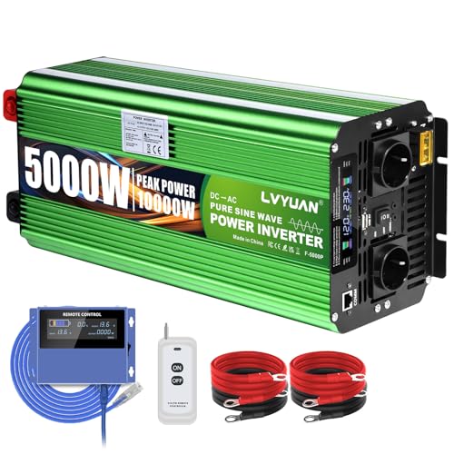 LVYUAN Convertisseur 12V 220V Pur Sinus 5000W /10000W Convertisseur de Tension Transformateur Onduleur avec télécommande sans Fil et télécommande Filaire LCD