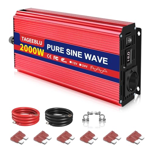 TAGEEBLU 2000W convertisseur 12v 220v Pur Sinus, transformateur 12v 220v avec écran LCD, 1 Prises UE