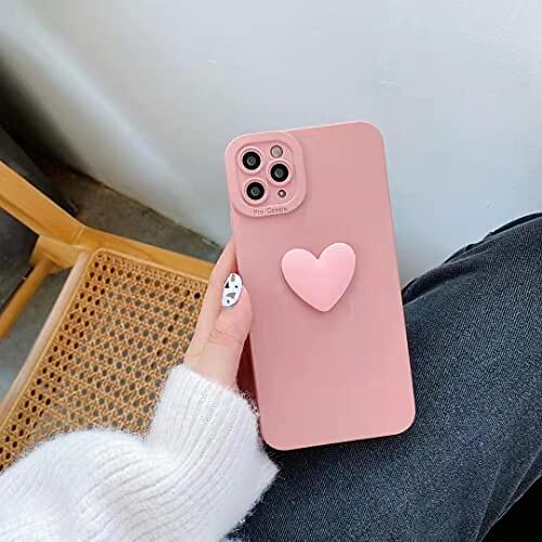 Härligt 3D rosa kärlekshjärta iPhone 13Promax fodral silikon mjukt telefonfodral