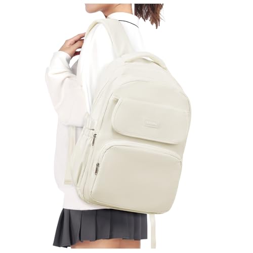 HYC00 Sac à Dos Scolaire College Cartables Fille Garçons, Sac d'école pour 14 Pouce Laptop Casual Daypacks pour Scolaire Outdoor Voyage Travail Imperméable Daypacks,A-Blanc