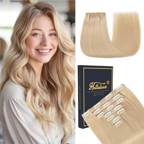 HotLulana Extension a Clip Cheveux Naturel 7pcs 35cm Rajout Cheveux Clip Naturel 14 Pouce Extension Cheveux Naturel 80g Human Hair Clip In Extension 18K#