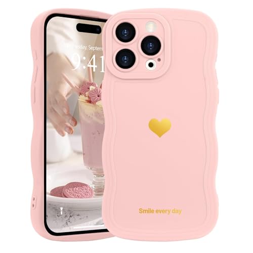 LAPOPNUT Coque Compatible avec iPhone 15 Pro Max Femme Motif Cœur Coque de Protection en Silicone Antichoc [Cadre à Vagues Bouclées] Case pour iPhone 15 Pro Max Rose