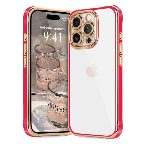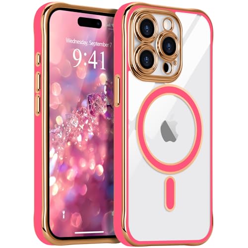 LCHULLE Magnétique pour iPhone 15 Pro Max Coque Transparente [Compatible avec Magsafe] Protection pour Appareil Photo Housse Antichoc galvanique Coque Silicone pour iPhone 15 Pro Max Rose Rouge