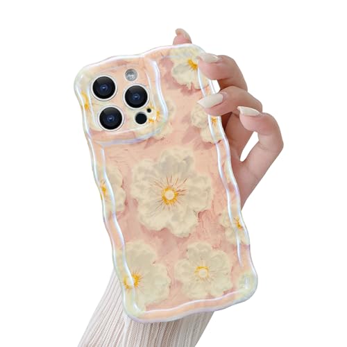 QLTYPRI Coque pour iPhone 15 Pro Max, Motif Floral Peinture à l'huile pour Filles et Femmes, Cadre Fin et bouclé en Silicone TPU résistant aux Chocs pour iPhone 15 Pro Max - Rose #2