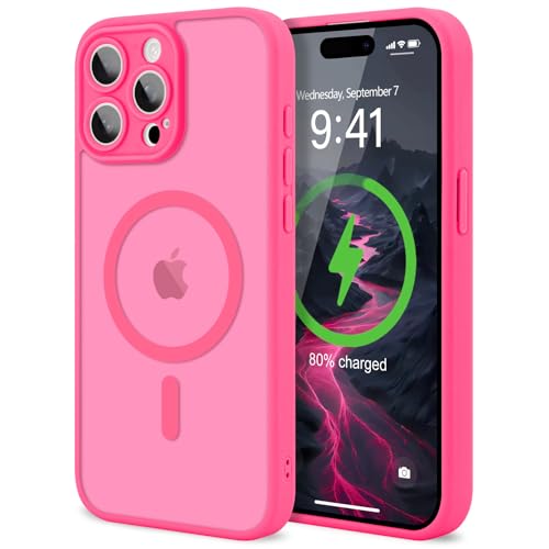 LAPOPNUT Coque Compatible avec iPhone 15 Pro Coque Compatible avec MagSafe en Silicone TPU Résistant aux Chocs et aux Rayures Case pour iPhone 15 Pro Rouge Rose