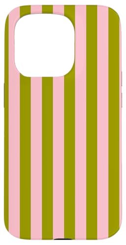 Vertical Stripes Elegant Pattern Coque pour iPhone 15 Pro Rose Olive Vert Rayé Mignon Girly Esthétique Preppy Stripe
