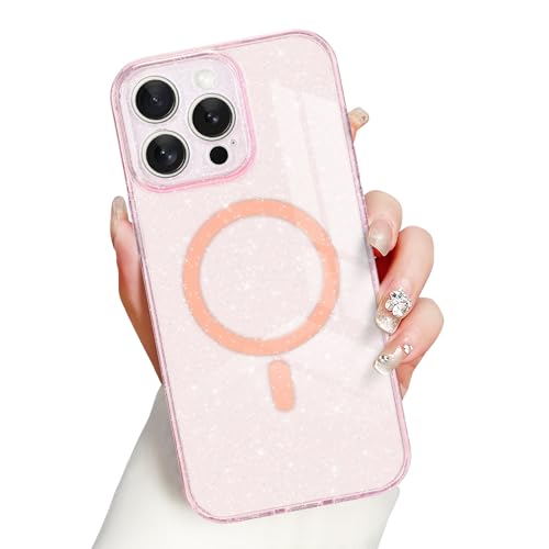 Newseego Coque pour iPhone 15 Pro Max, Paillettes Bling Housse 6,7 Pouces Compatible avec MagSafe Antichoc TPU Souple Transparente Protection pour iPhone 15 Pro Max Rose