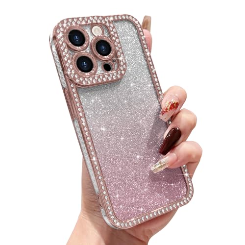 L-FADNUT Coque Compatible avec iPhone 15 Pro Max Paillettes Dégradé Téléphone Coque Cristal Diamant Coque de Protection Antichoc Résistant aux Rayures TPU Souple Coque pour iPhone 15 Pro Max, Rose