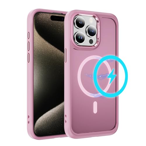 LCHULLE Magnétique Coque pour iPhone 15 Pro Coque Compatible avec MagSafe Semi-Transparente Mat Fine Antichoc Housse Protection PC arrière + TPU Bumper pour iPhone 15 Pro Rose