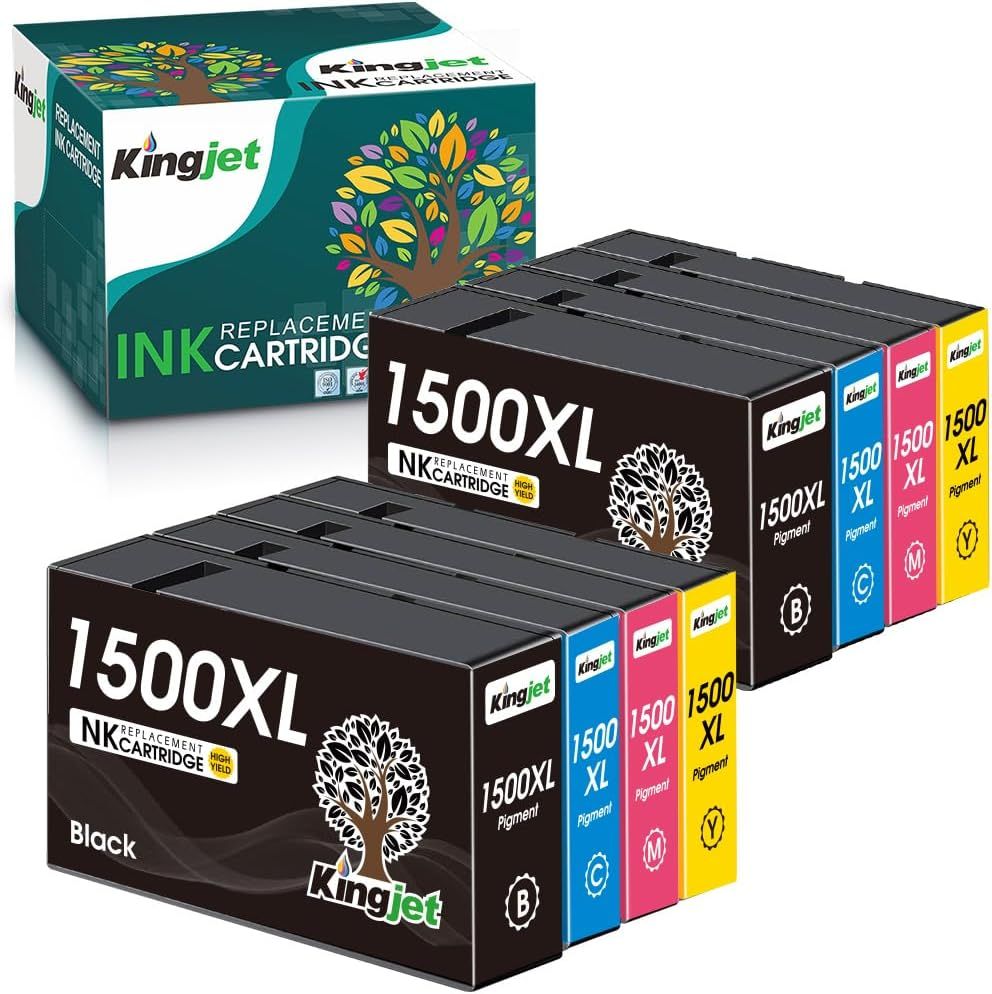 KINGJET 1500XL Cartouches d'encre pour Canon PGI-1500 1500 XL Compatible avec Canon Maxify MB2150 MB2750 MB2350 MB2155 MB2000 MB2050 MB2300 MB2755 (2 Noir, 2 Cyan, 2 Magenta, 2 Jaune, 8 Pack)