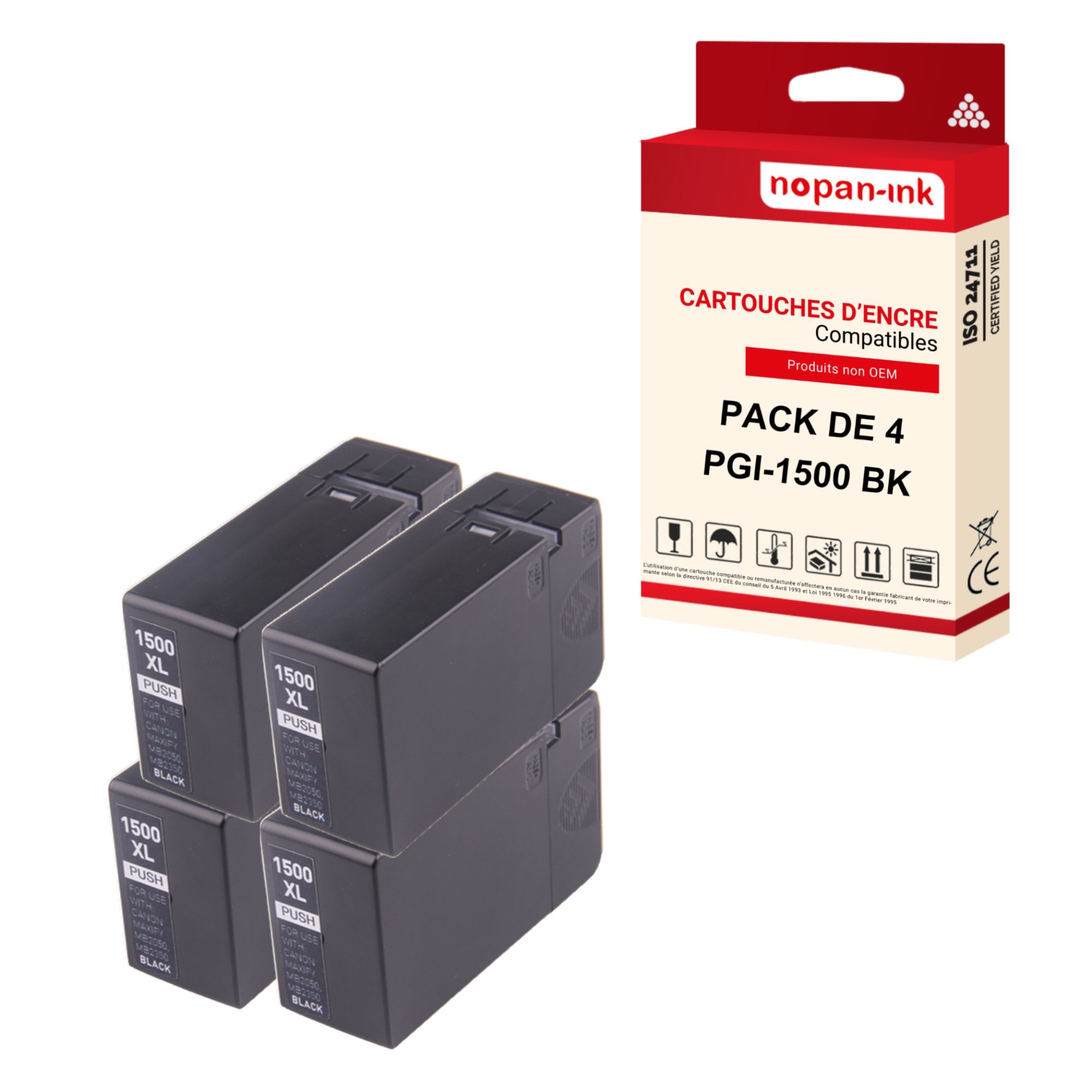 NOPAN-INK - x4 Cartouches compatibles pour CANON PGI 1500 XL PGI 1500XL Noir pour Canon Maxify MB 2000 Series MB 2050 MB 2100 Series MB 2150 MB 2155 M