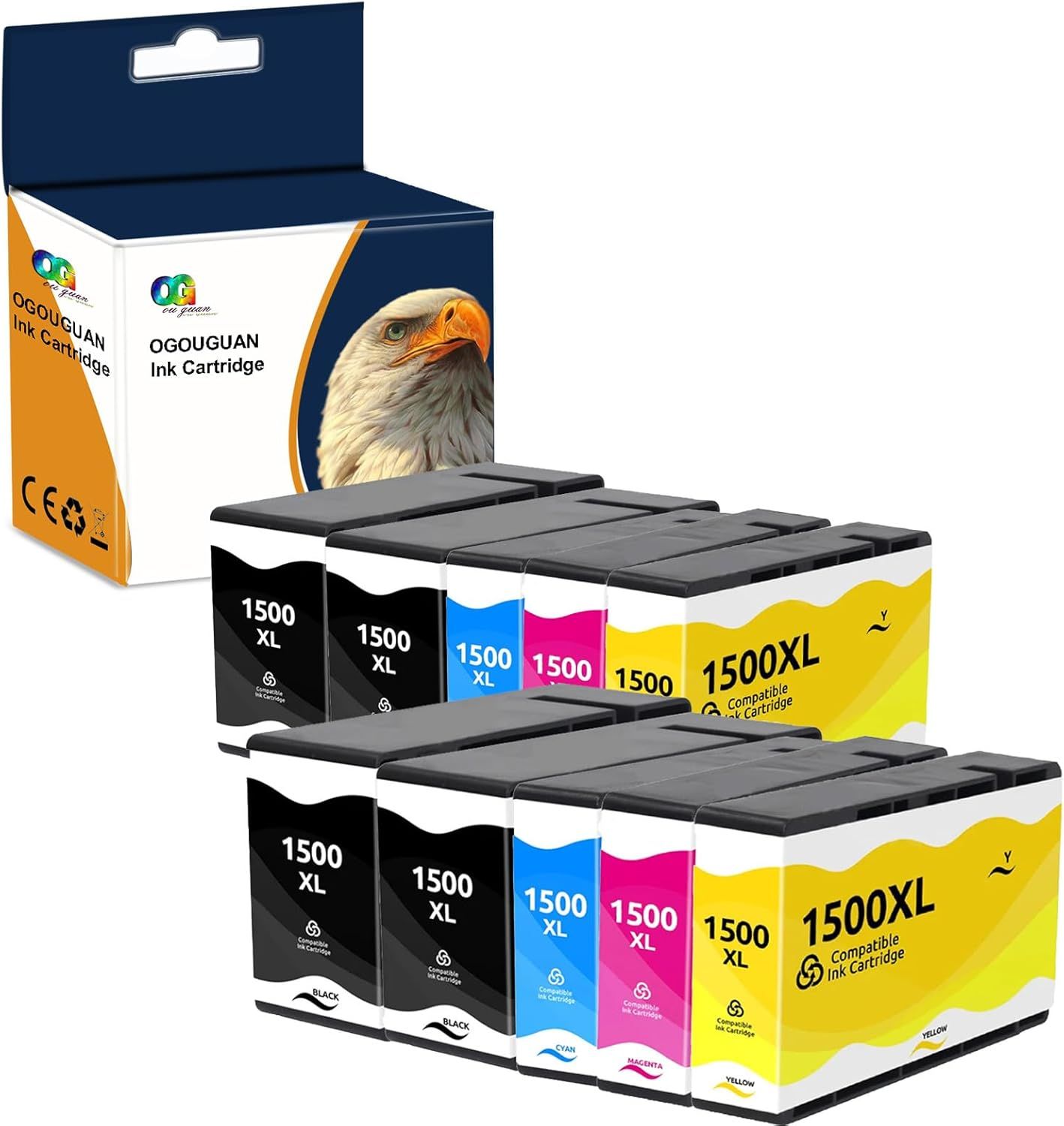OGOUGUAN PGI-1500XL 1500XL Cartouches d'encre pour Canon PGI-1500 1500XL pour Canon Maxify MB2150 MB2750 MB2350 MB2155 MB2050 MB2755 MB2300 (4 Noir, 2 Cyan, 2 Magenta, 2 Jaune) Lot de 10