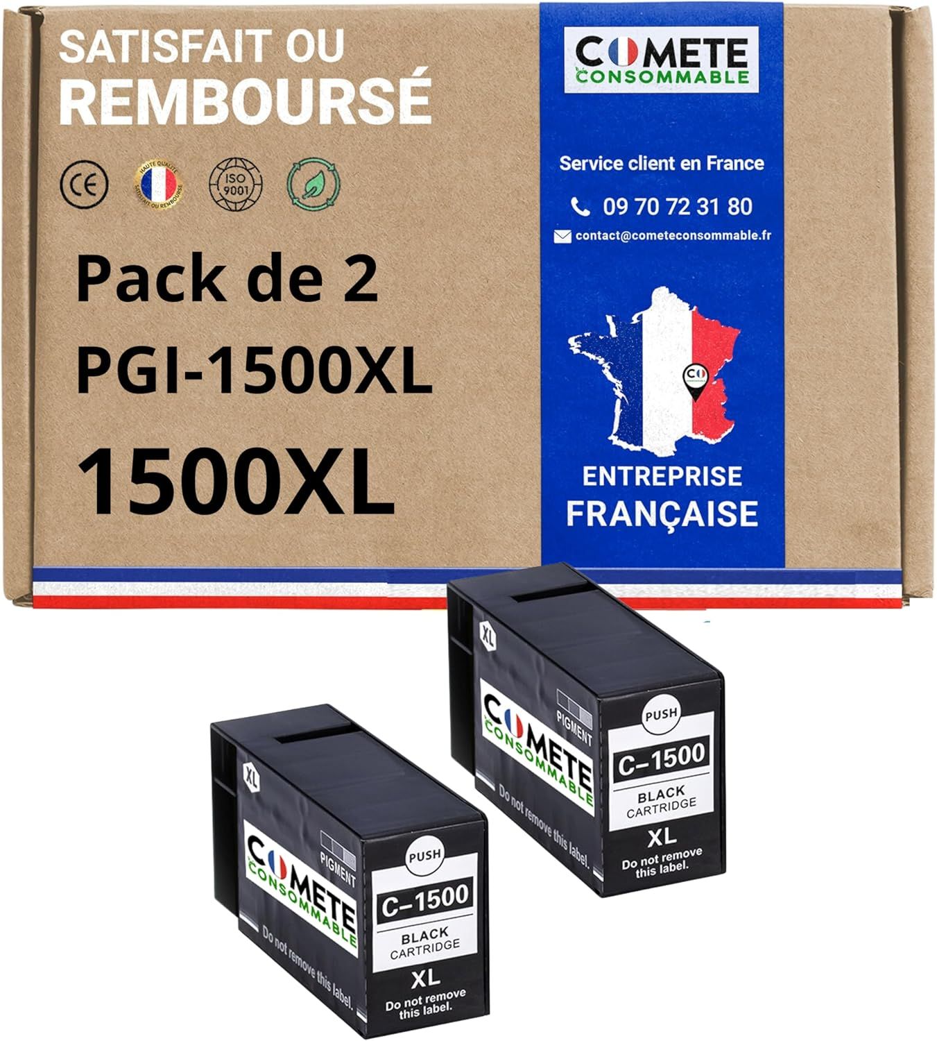 COMETE, Marque française - 1500XL - 2 Cartouches Compatibles avec Canon PGI-1500 XL PG1500XL - pour Canon Maxify MB 2050 2100 2150 2155 2300 2350 2700 2750 2755 (2 Noir)