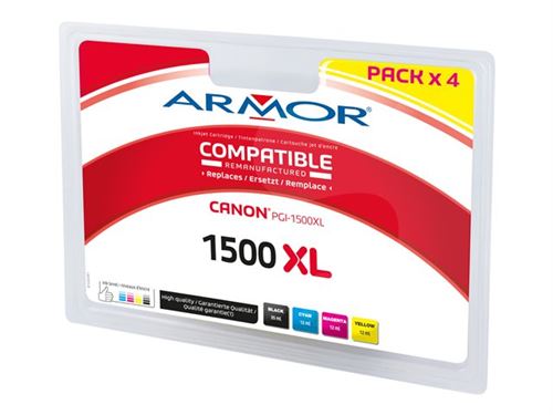 Armor - Pack de 4 - noir - compatible - remanufacturé - cartouche d'encre (alternative pour : Canon PGI 5, Canon PGI-1500, Canon PGI-1500C, Canon PGI-1500XL BK, Canon PGI-1500XL C, Canon PGI-1500XL M, Canon PGI-1500XL Y) - pour Canon MAXIFY MB2050, MB21