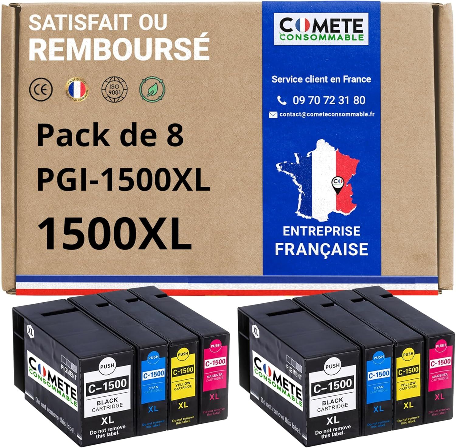 TEPPA-COMETE, Marque Française - 1500XL - 8 Cartouches d'encre Compatibles avec Canon PGI-1500 / PG1500 XL - pour Canon Maxify MB 2050 2100 2150 2155 2300 2350 2700 (2 Noir et 6 Couleur)