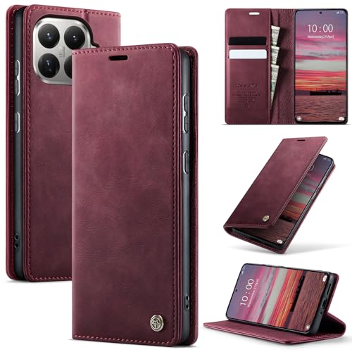 Lonjanfon Coque Xiao Mi 15T Pro 5G,Housse Cuir PU Premium [RFID Blocage][Porte Cartes][Stand Fonction][Antichoc] Magnétique Flip Étui pour Xiao Mi 15T Pro,Rouge
