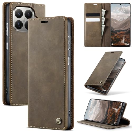 Lonjanfon Coque Xiao Mi 15T Pro 5G,Housse Cuir PU Premium [RFID Blocage][Porte Cartes][Stand Fonction][Antichoc] Magnétique Flip Étui pour Xiao Mi 15T Pro,Café