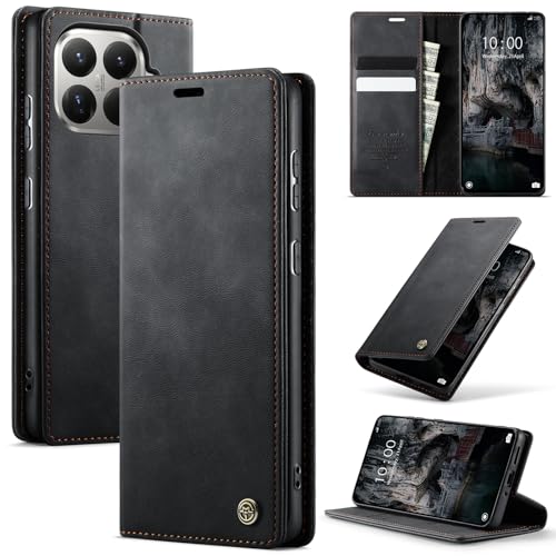 Lonjanfon Coque Xiao Mi 15T Pro 5G,Housse Cuir PU Premium [RFID Blocage][Porte Cartes][Stand Fonction][Antichoc] Magnétique Flip Étui pour Xiao Mi 15T Pro,Noir