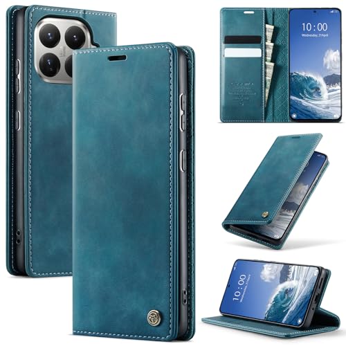Lonjanfon Coque Xiao Mi 15T Pro 5G,Housse Cuir PU Premium [RFID Blocage][Porte Cartes][Stand Fonction][Antichoc] Magnétique Flip Étui pour Xiao Mi 15T Pro,Bleuvert