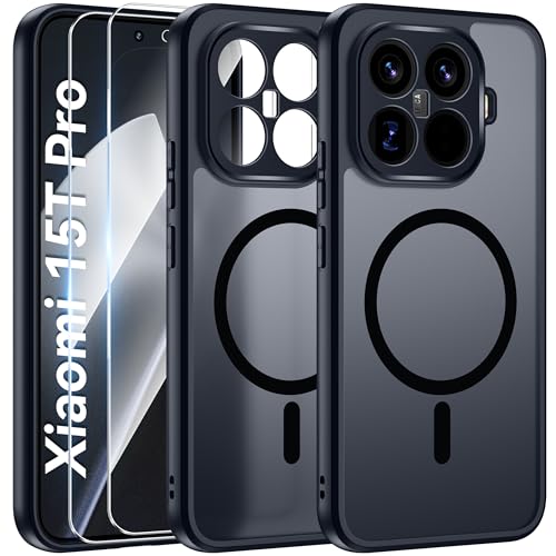 Oelrstfe pour Xiaomi 15T Pro 5G Coque Compatible avec MagSafe avec 2 Verre Trempé, Magnétique Etui Translucide Mat Arrière Housse, Protection d'objectif Tout Compris Ultra Fine Antichoc Case, Noir