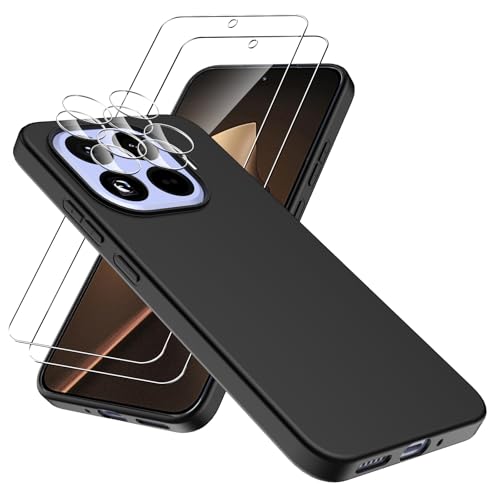 WFTE Coque pour Xiaomi 15T Pro avec 2 Pièces Verre Trempé Protection en Silicone Liquide Souple Cover Antichoc avec Protege Housse Étui pour Xiaomi 15T Pro – Noir