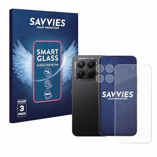 savvies 3 Pièces Protection Écran Verre pour Xiaomi 15T Pro (Avant+Caméra) 9H Film Protecteur, Film en Verre, Transparent, sans Bulles, Anti-Fingerprint, Anti-Rayures, Verre Trempé