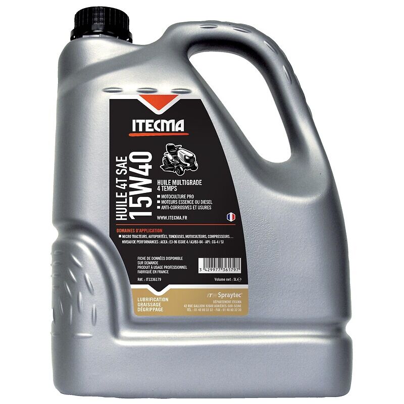 Huile moteur 4T SAE 15W40 1litre lubrifiant pour machines agricoles et de jardin 320123