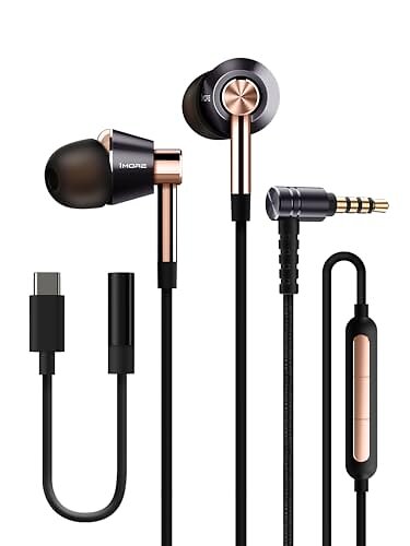 1MORE Triple Driver Ecouteur Intra-auriculaire très Haute résolution Triple Driver Casque avec Microphone intégré et Bouton télécommande Multifonctions E1001 (Or)
