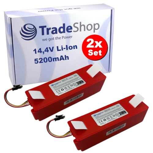 Trade-Shop Lot de 2 batteries Li-ion 14,4 V/5200 mAh compatibles avec Xiaomi, Mijia 1S, 1T, Mi première génération SDRJQR01RR, Q5, Q7 Max, S7 MaxV Plus, T61RR