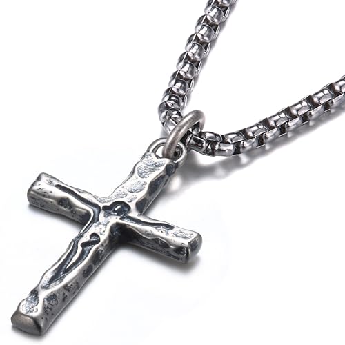 Sllaiss Collier en argent sterling 925 avec pendentif en forme de croix de Jésus sculpté avec chaîne en acier inoxydable pour homme et femme 45,7 à 66 cm, 24 in (60cm) Chain - Extra Long Fit, Argent