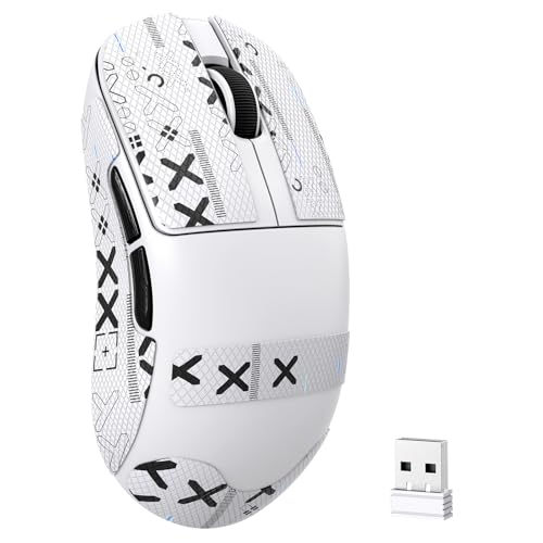 ZIYOU LANG×Magic-Refiner AJ199 Ratón Gaming Inalámbrico 49g Ultra-Ligero Con Cinta de Agarre Antideslizante, Tri-Mode 2.4G/BT/Cable, PAW3311 24K DPI, 1000Hz, Recargable Para PC/Mac - Blanco