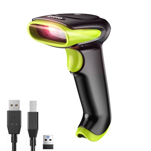 LENVII Lecteur Code Barre sans Fil Handheld,1D 2D QR Scanner de code 2 en 1 mode de connexion 2.4G sans fil câble USB,PDF417, DataMatrix et MaxiCode Barcode Scanner avec Windows,Android,MAC,Ordinateur
