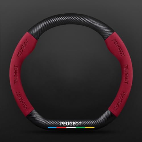 YSQOFDNFD Housse Volant Voiture pour Peugeot 308 2014-2020 II T9 308 SW CC Housse Volant Voiture Gel Silice PU Cuir Antidérapant Massage Accessoires Voiture Couvre de Volant(Rouge)