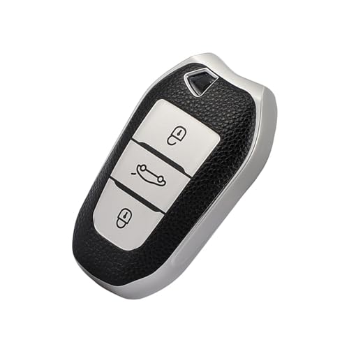 ontto Coque de clé de voiture pour Peugeot 208 308 S/CC/SW 508 2008 3008 5008 Rifter Citroën C3 Arricross C4 Picasso DS3 DS4 Berlingo Coque de clé en silicone TPU 3 boutons Cuir Argent